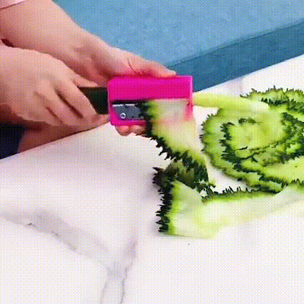 Just put a cucumber in cutting tools, like sharpening pencils rotation.The whole article cucumber blade round face to stick a circle.