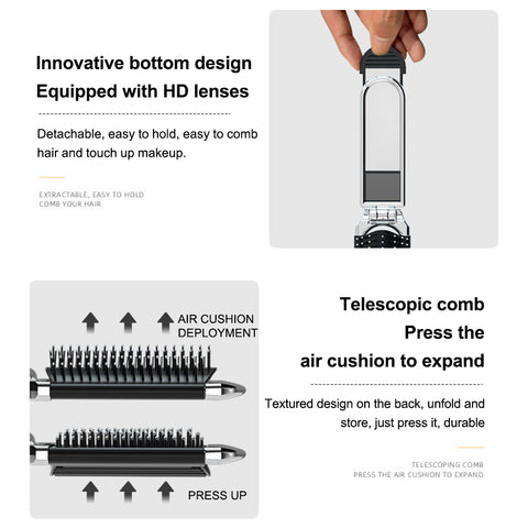 Hair brush with mirror - This travel brush for women comes with a small, delicate and smooth mirror,The design with mirror can help you check your makeup at any time. that allows you to smoothly comb your hair and makeup with great convenience.